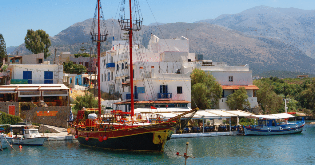 In Sissi vind je een kleine haven met vissersbootjes, witte huisjes en tavernes waar de geur van gegrilde vis zich mengt met die van de zee. Het is een levendig maar ontspannen dorp — perfect voor een koffiepauze, een avondwandeling of een diner aan het water.